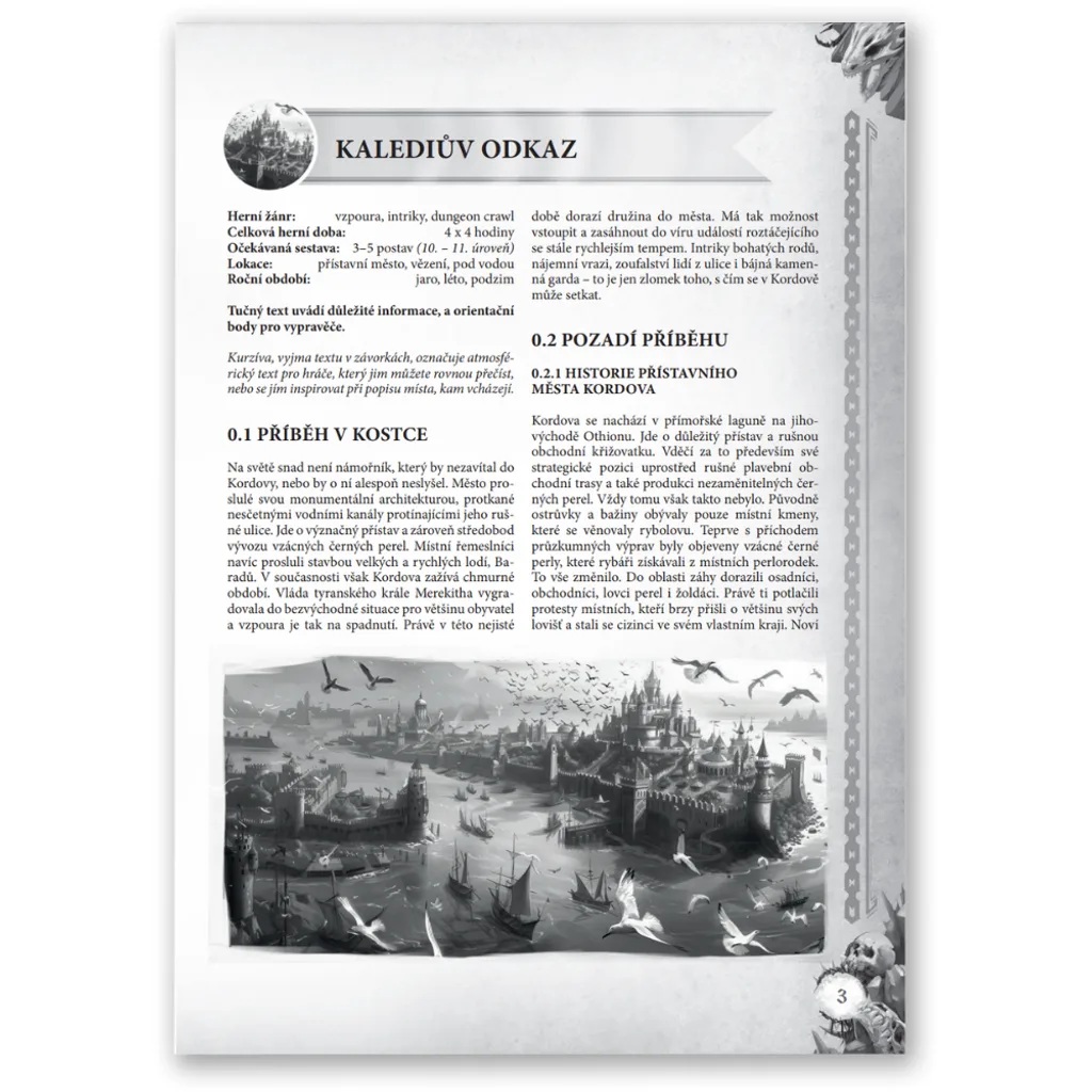 Ideální pro: Skupiny milující politické intriky, detektivní pátrání a morálně složité situace. Vypravěč si zde přijde na své – NPC jsou živí, motivovaní a nepředvídatelní.